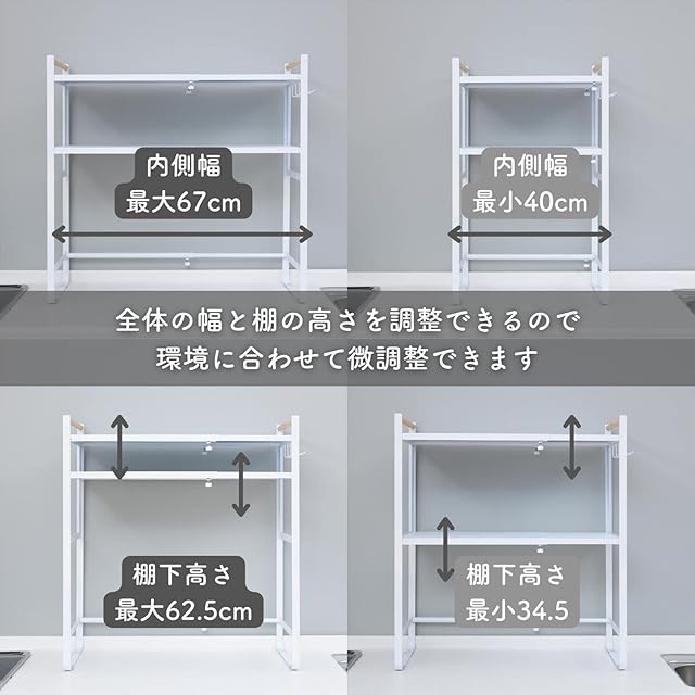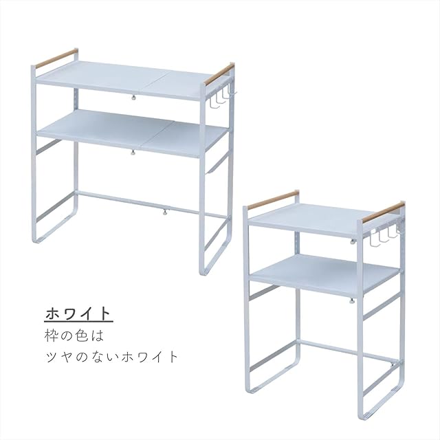 color:ホワイト style:【レンジ上ラック】伸縮(2段):