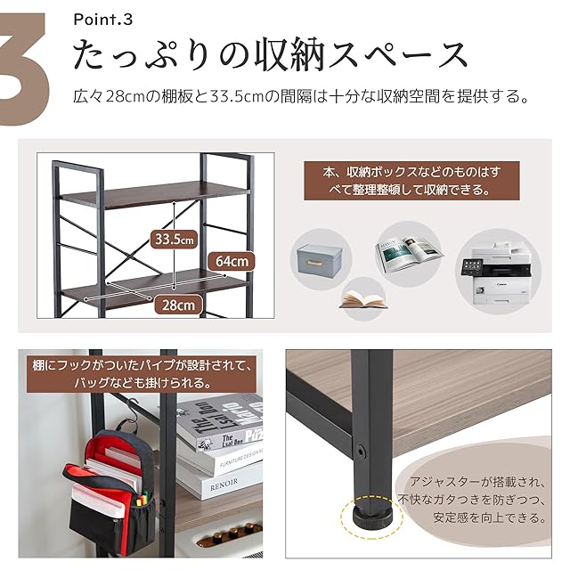 【細かいこだわり】パイプに付いたフックは、バッグなどを掛けるのに便利です。さらに、アジャスターが搭載されており、ガタつきを防ぎつつ安定感を向上させることができます。これらのディテールは、使い勝手とデザインの両方に配慮されています。※1年間付いております。ご組立中・使用中に何か問題が生じた場合、どんな些細なことでも気軽にご連絡いただければ幸いです。お力になれるよう、最善のサポートを提供させていただきます。どうぞお気軽にお問い合わせください♪