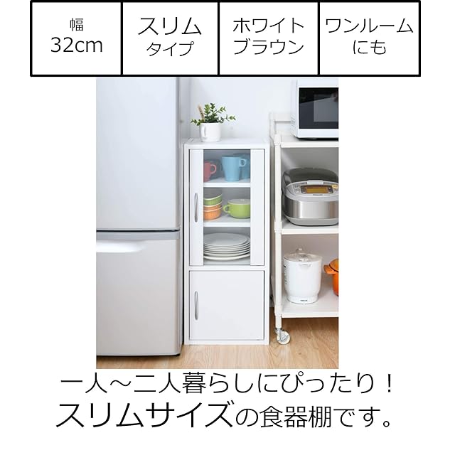 山善(YAMAZEN) 食器棚 (スリム) 幅32㎝ (ミニ) 高さ80×奥行29㎝ (扉が左右付け替えられる/棚板高さ調節) 一人暮らし 組立品 ダークブラウン CCB-8030(DBR)