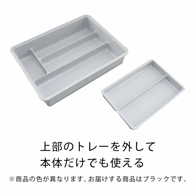 下村企販 カトラリーケース 仕切り付き スライド式 【日本製】 引き出し 整理トレー 2段 食器棚 収納 箸入れ スプーン フォーク 鉛筆 子供部屋 ブラック 樹脂製 燕三条 24680