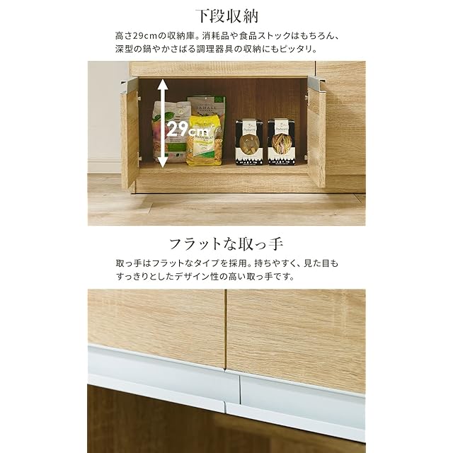 萩原(Hagihara) キッチンカウンター 食器棚 チェスト レンジ台 大容量 2口コンセント 付き 幅89 ナチュラル 1台 VKC-7150NA