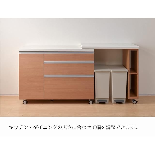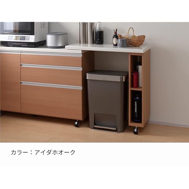パモウナ(Pamouna) 食器棚 エクステンションテーブル 幅90×奥行47.2×高さ92.1cm ロータイプ 塵箱 ごみ箱収納付き 収納 キャスター付き AW-90C アイダホオーク