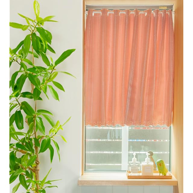 【簡単お洒落に目隠し!】小窓や戸棚の目隠しにぴったりなカフェカーテンです。掛けるだけで気になるところを目隠ししてくれるだけでなく、お部屋を明るくオシャレに演出してくれます。シンプルながら無地ではなく横に入るラインが美しい、使いやすさとオシャレさを兼ね備えた他にはないデザインのカフェカーテンです。当ショップでは使いやすい5色をご用意。お部屋の雰囲気に合わせてお使い分けください。【仕様】▼本体サイズ:幅145×丈75cm▼素材:ポリエステル100%▼生地:遮光生地( 3級遮光 )▼カラー:ピンク▼生産国:日本【使い方は簡単】おうちにあるつっぱり棒やポールにかけるだけ!またウォッシャブルなのでお手入れも簡単!清潔感のある空間が続きます。ご家庭でネットに入れるか弱水流で洗濯機にかけることができます。110℃を限度に、スチームなしでアイロンが使えます。【国産の遮光性生地を使用】掛けるだけで日差しをカットしてくれます。またプライバシーの気になる小窓にかければ、お部屋のプライバシーを守るだけでなく、上品で柔らかな手触りでお部屋の雰囲気づくりに一役買ってくれます。そして、安心の日本製。【小窓以外にもオススメ】小窓や生活感が出がちなトイレやキッチンの戸棚、お子様のカラーボックスなどをおしゃれに目隠し。生活感が隠れる上にお洒落なお部屋を演出することができるお得なカフェカーテンです。 【贈り物にも】母の日、父の日は勿論、様々なシーンでプレゼント・ギフトとしてご利用頂けます。