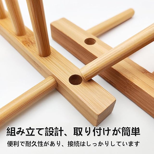 【多機能ディッシュスタンド】皿立て、まな板スタンド、鍋蓋収納ラックとして使える多用途デザインでキッチンをすっきり整理。<br/> 【木製&ナチュラルデザイン】温かみのある天然木素材で、どんなキッチンにも馴染むおしゃれなインテリアに。<br/> 【折りたたみ式で省スペース】使わない時は折りたたんでコンパクトに収納でき、省スペースでキッチンを有効活用。<br/> 【水切り機能付き】適度な隙間で水切りがしっかりでき、食器やまな板を清潔に保ちやすい設計。<br/> 【簡単組み立て&安定性抜群】工具不要で手軽に組み立てられ、しっかりした作りで倒れにくく安心して使えます。