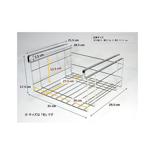 【サイズ】(約)幅31 奥行29.5 高さ17.5 cm 【バスケット内収納サイズ】(約)幅30 奥行27.5 高さ13.5 cm 【耐荷重】全体約2.0 kg