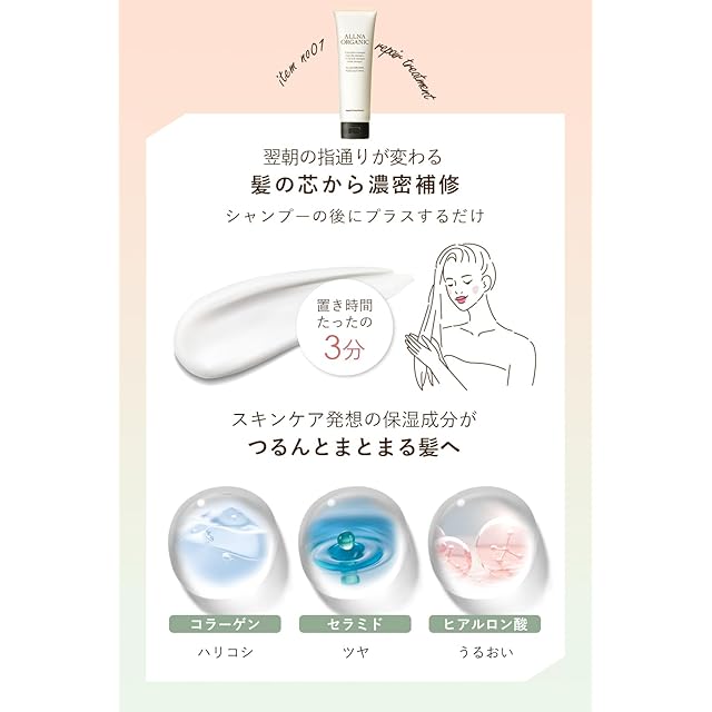【 使用方法 】 シャンプー の後の濡れた髪にリペア トリートメント を丁寧に馴染ませ、5分ほど置いたらよく洗い流してください。 ヘアオイル と ヘアウォーター は、タオルドライした髪にも乾いた髪にもご使用いただけます。ヘアオイルは、ヘアスタイリング用品としても最適です。