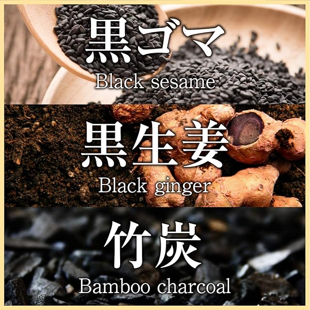 【 3つの黒で根本からケア 】 栄養素の巡りをよくする成分が豊富な『黒ゴマ』、ポリフェノールやアントシアニンなど豊富な『黒生姜』、天然ミネラル豊富な『竹炭』。その他うれしい成分たっぷり配合♪