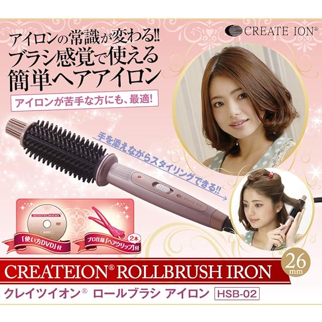 CREATEION クレイツ イオン ロールブラシアイロン 26mm HSB-02 ヘアアイロン 2段階温度調節 巻き髪 カール ボリュームアップ