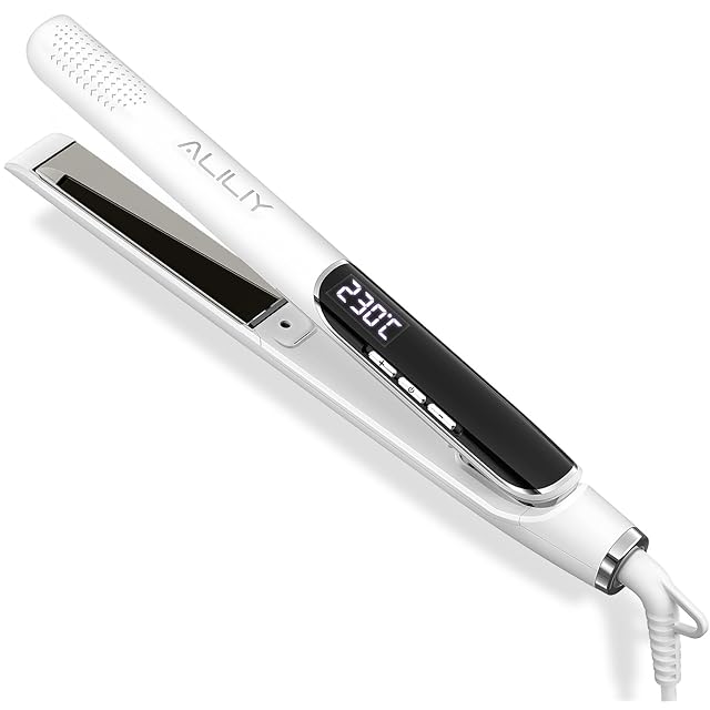 Aliliy ヘアアイロン 24mm チタンヘアアイロン ヘアストレートナー 2way カール&ストレート 千万級マイナスイオン ストレートアイロン 100~230℃ 痛まない ヘアケア プロ仕様 ディスプレイ表示 海外対応 男女兼用(ホワイト)