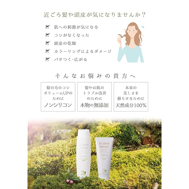 【❶天然成分100%】17年前に肌の弱い友人のために作った 石鹸 から始まったB.C.4000が開発。 地肌 と髪へのやさしさを追求した天然成分100%の ノンシリコン の トリートメント です。 オーガニック 植物エキス配合。