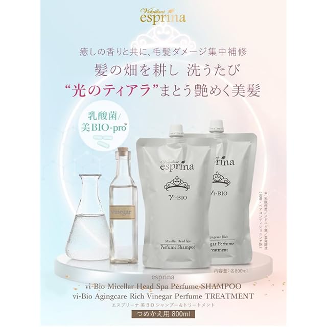 < つめかえ用 大容量800ml 2点セット > エスプリーナ 美BIO シャンプー & トリートメント レフィル 各 800ml