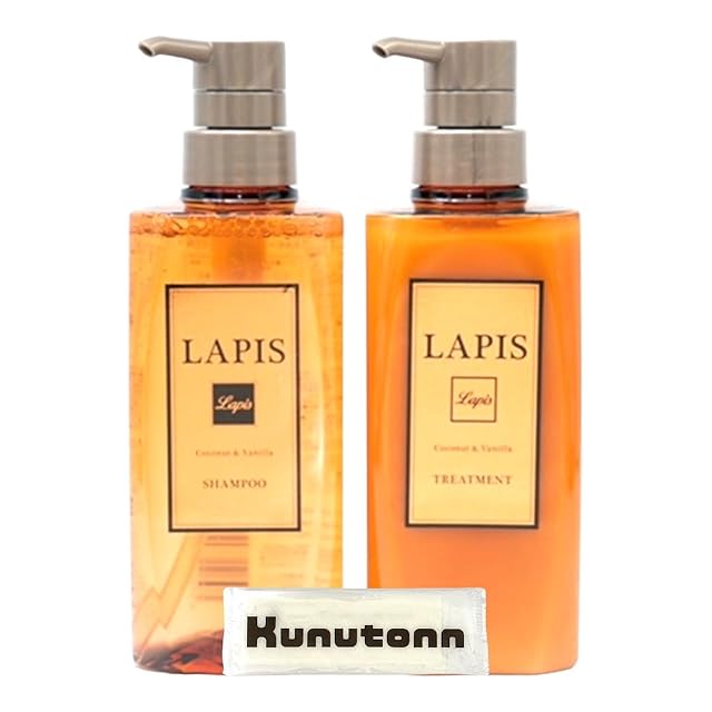 Lapis ラピス サンセットバニラ ココナッツ&バニラの香り エルピーエス シャンプー 本体 500ml 1個 + トリートメント 本体 500ml 1個セット + Kunutonnオリジナルロゴ入りhおしぼり付