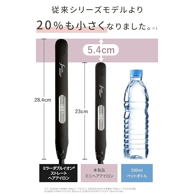【 コンパクト 軽量 】 SALONMOON (サロンムーン) ミニ ストレート ヘアアイロン ミラーダブルイオン 20mm 持ち運び 旅行用 2way モーヴピンク ポーチ付き 海外対応 高濃度マイナスイオン ヘアアレンジ ショートヘア 前髪