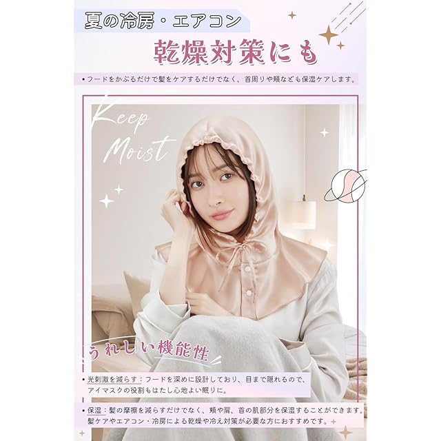 【4WAY多用途】ナイトキャップとしてだけでなく、フードや日焼け止め帽子、アウトドア防風キャップとしても使用できる4WAY多用途デザインです。夏にはさらっとした睡眠環境を提供し、汗をかいても快適に過ごせる素材特性が魅力的です。同時に、日焼け止めや防風効果もあり、夏や冷房のきいた部屋でも頭部を包み込んでくれます。季節に左右されず、年間を通して快適に使用できます。