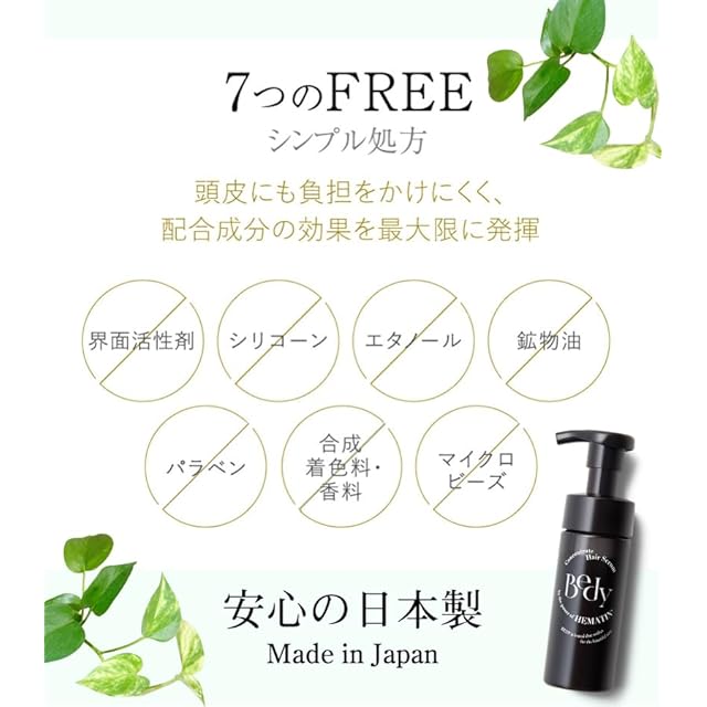【無添加処方で低刺激】パラベン、合成香料、鉱物油など7つのフリー処方。敏感な地肌や髪にもやさしく、安心してお使いいただけます。