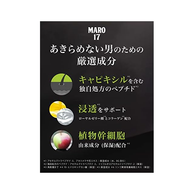 その頭皮に逆転劇を!MARO17独自処方のペプチド(*1)配合、男のためのプレミアムなシャンプー。パーフェクトウォッシュ&オリジナルクール処方で髪と頭皮をしっかり洗います。