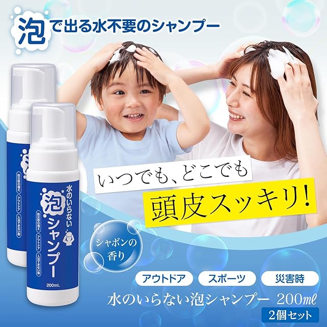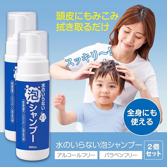 コモライフ 水のいらない 泡シャンプー 2個セット 200ml ドライシャンプー 洗い流し不要 低刺激 保湿 日本製