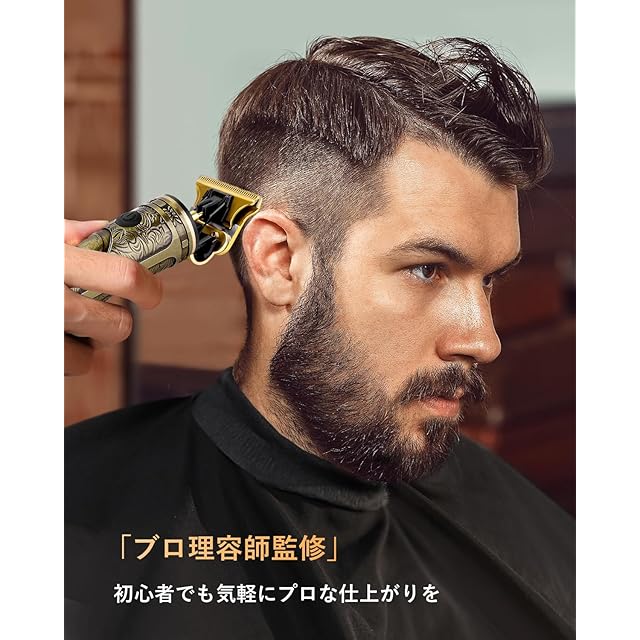 【レリーフパターンデザイン&切れ味抜群&安全性】バリカンはスタイリッシュな外観と高品質のブレードを備えています。ヘアカッター全体が精巧に彫られ、細部に至るまで細心の注意を払ってパターンが作られ、デザインがかっこいいです。カッターヘッドはR型取り刃設計を採用しており、優れた切断性能、髪の毛を絡まない優れた切れ味と滑らかさ、安全で迅速なトリミング、そして肌を傷つけません。簡単・安全な設計で初心者でもご心配なく使えます。簡単に好みの髪の長さ、もみあげにカットできます。