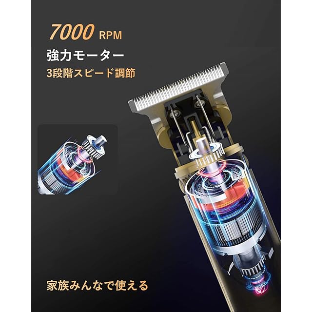 【3段階速度調整&低騒音設計】3段階の速さ(7000RPM、6500RPM、6000RPM)切り替えが可能。ワンボタンで簡単に3段階の速度を調整可能で、複雑な操作一切不要、初心者でも手軽に散髪を仕上げることができる。パワーが強く、高回転で、ひげ剃りがスムーズです。低ノイズ設計、安全で静か、家族全員で使用できます。音を気にすることなく、好きな時間に使用できます。散髪操作音に子供が怖がることはありません。柔らかい髪でも、硬い髪でもきれいにカットできます。