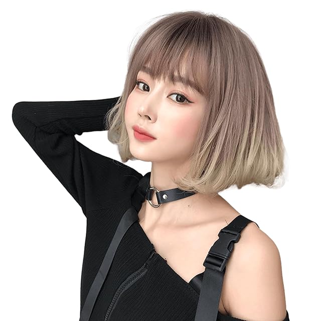 烏兎の矢先 ウィッグ ボブ 通気性高い ストレート ショート カール ピンク 金髪 韓国風 原宿 自然なカール カツラ フルウィッグ ファッションウィッグ ソフトな感触 小顔効果 使いやすい レディース かわいい 女性 女装 耐熱 ネット付き