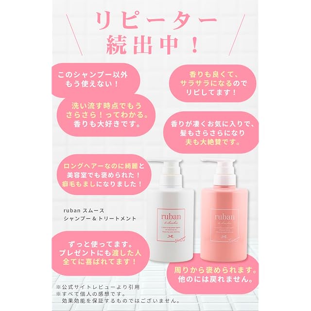 ruban シャンプー トリートメント セット アミノ酸シャンプー【トリプルシルク成分が浸透xシャンプーだけで絹のような手触り×各400ml】 (スムースシャンプー)