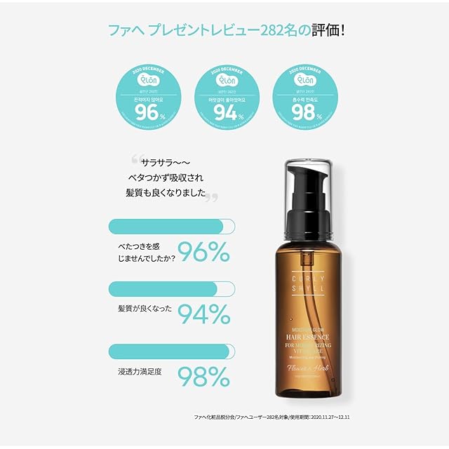 ✅【自然派処方】CURLYSHYLL(カーリーシール)のモイスチャーカーミングヘアエッセンス/自然由来成分配合で、敏感な頭皮にもやさしい処方