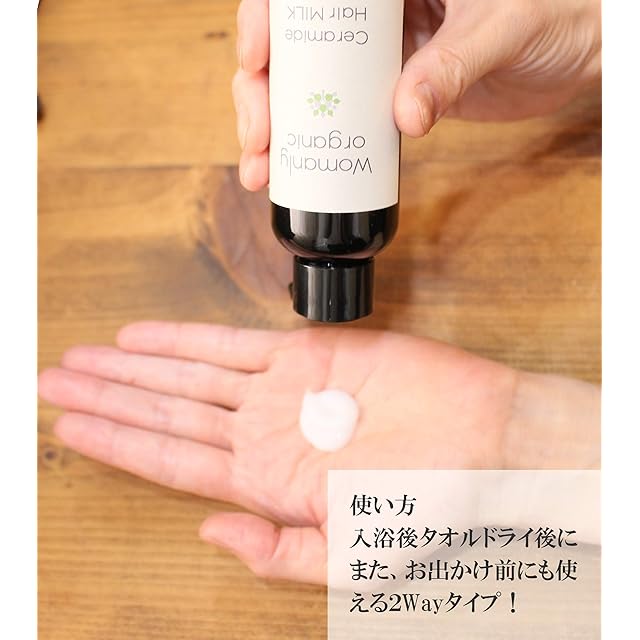 ウーマンリーオーガニック セラミドヘアミルク 髪の乾燥、広がる髪にしっかり保湿 肌にもやさしい無添加 敏感肌の方にも (200ml, ホワイト)