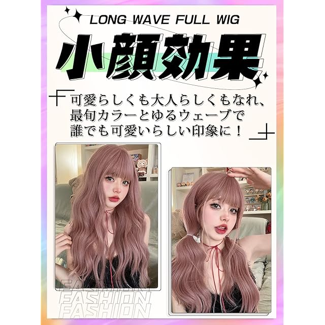 ウィッグ ロング ウィッグ 自然 ロング カール ウィッグ ロング ウェーブ 巻き髪 ロングヘアー かつら 女装 フルウィッグ ロリータ コスプレ かつら wig 小顔 自然 耐熱 ネット 付(ピンクアッシュ)