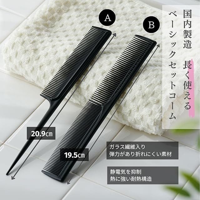 【国内製造】歯ブラシからロケットまで「モノづくりの町」東大阪市の町工場で製造された国産ヘアコームのセット。コーム・櫛のプラスティック製造技術の高い国内工場で製造・検品をしているので、バリや破損などを気にせずにご使用いただけます。