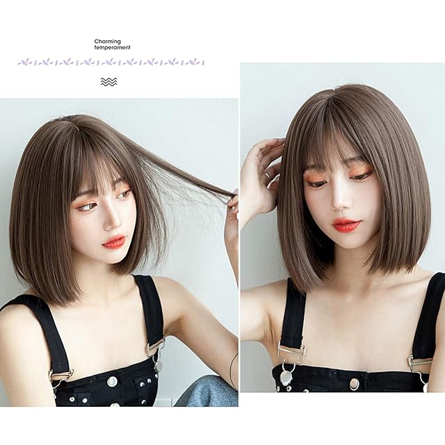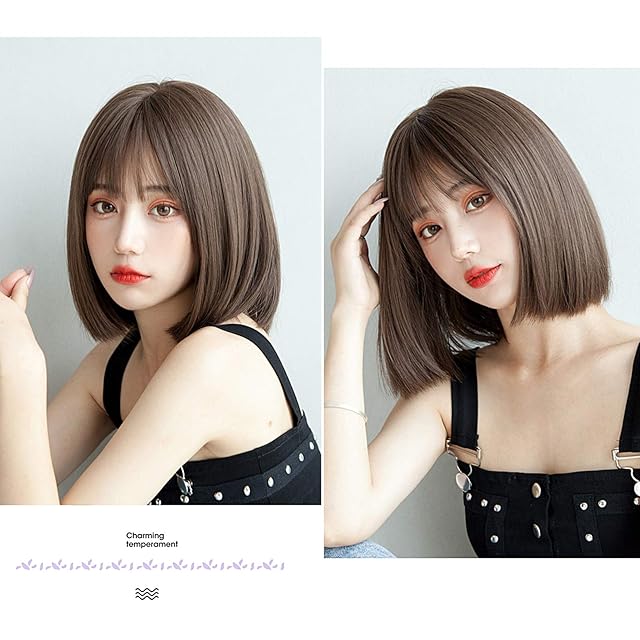 Candybay ウィッグ ボブ ショート レディース wig カツラ ボブショート セミロング ファッション フルウイッグ 小顔 おしゃれ 可愛い 自然 耐熱 ネット付き (オイルブラウン)