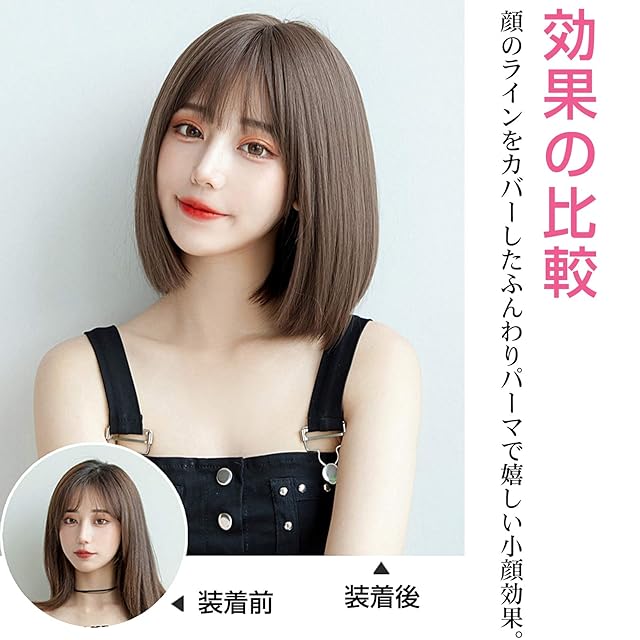 【スタイル】小顔に見える、前髪はぱっつん空気感の定番ショートボブウィッグです。 かつらつぽさがなく自然の髪の毛に近い雰囲気を作り出して丸みのあるシルエットが大人可愛い。メッシュ構造で暑い日でも蒸れにくい、ふんわり軽い付け心地で夏に大活躍すること間違いない。