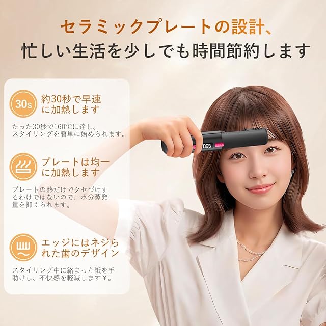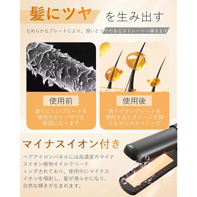 【千万マイナスイオン付き】おしゃれなコードレスデザインとミニサイズでスタイリングが簡単。当社のヘアアイロンパネルには高濃度のマイナスイオン植物オイルでコーティングされており、使用中にマイナスイオンを噴射し、髪が滑らかになり、自然な輝きが生まれます。同時に、静電気を防ぎ、縮れ毛やふさふさした髪を抑え、枝毛を効果的に減らすことができます。