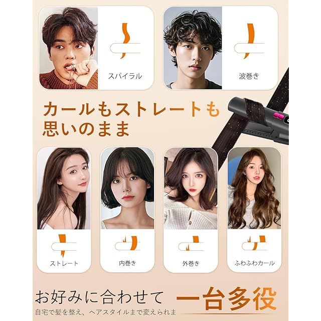 【ストレート&カールの2way仕様】 この一台でストレートもカールも自由自在。男女問わず、毎日のヘアスタイルを簡単に楽しめる2way仕様です。3Dフローティングセラミックプレートが髪にやさしく、均一に熱を伝えることで、髪へのダメージを抑えながら完璧なスタイルを実現します。