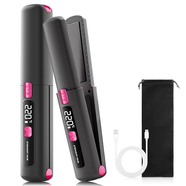 DSBWAN コードレスヘアアイロン ミニストレートヘアアイロン 20分自動電源OFF usb充電式 4500mAh大容量バッテリー MAX220℃ 2wayカール&ストレート 7段階温度設定可能 前髪 軽量 急速加熱 男女兼用 カバー付き ポーチ付き
