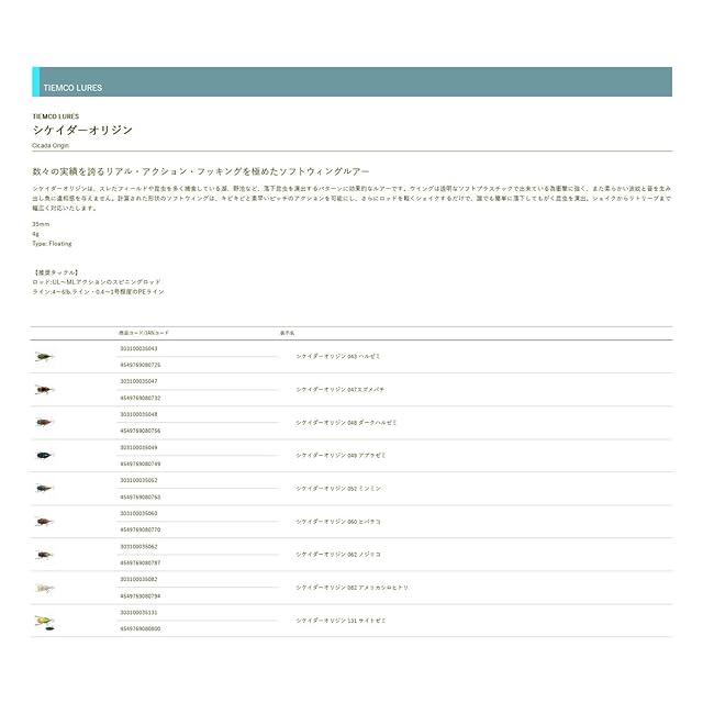 ティムコ(TIEMCO) ルアー シケイダーオリジン #082 アメリカシロヒトリ