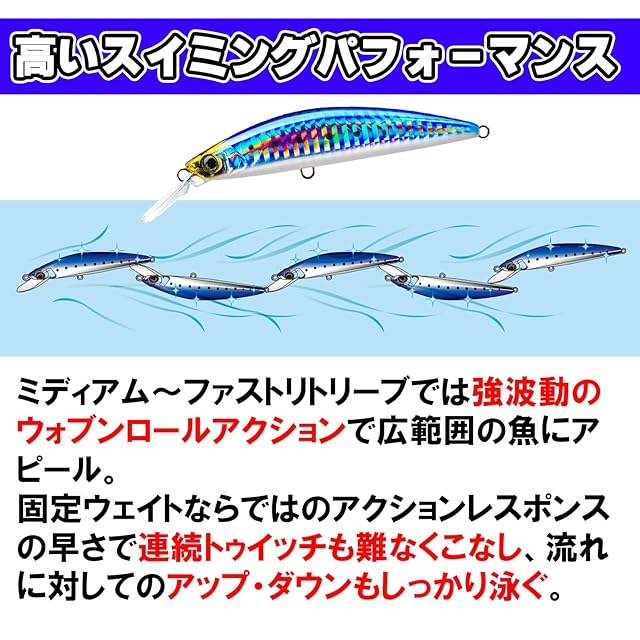 多彩なターゲット:青物、サゴシ、ヒラメ、マゴチに最適!守備範囲は多岐に渡り、ソルトウォーターのターゲットだけでなく、本流・渓流のトラウト狙いにも使用可能。