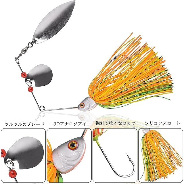 【2タイプブレード】:スピナーベイトのコロラド、ウィローリーフの2種ブレード、高品質のブレード(ツルツルと凹凸の2種表面処理)の声と回転によるバイブレーションとフラッシングによるアピール性は魚の攻撃性などを誘い出し、使用範囲は広いです。