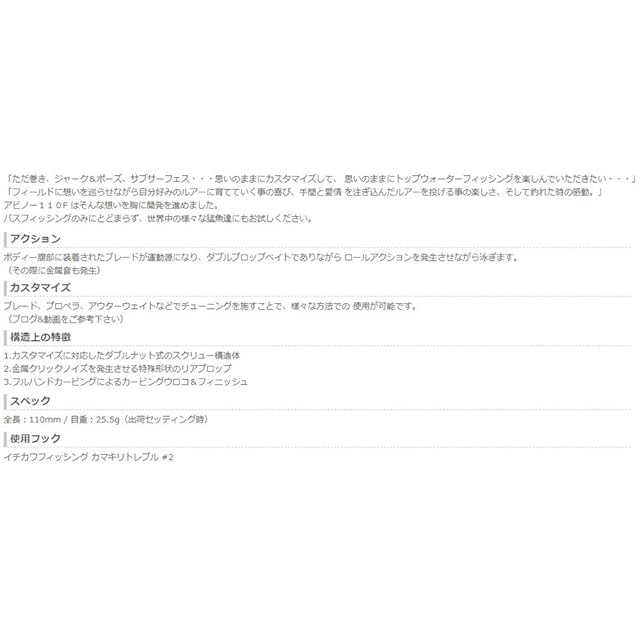 全長:110mm / 自重:25.5g / タイプ:フローティング