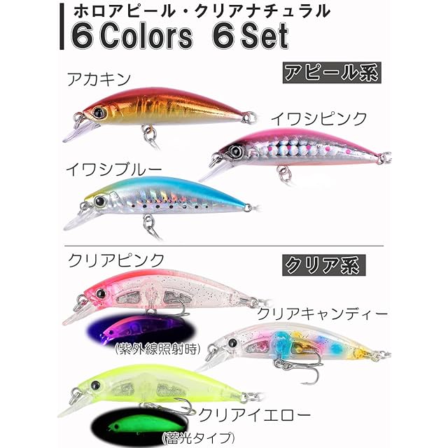 Contyu 汎用 ルアー セット ヘビーシンキング ミノー 5cm 6g ソルト トラウト 初心者向け (カラーA(6個セット), 5cm/6g)