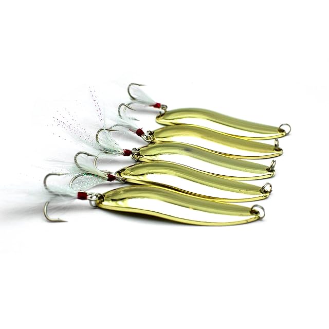 10ピース 22g フィッシングルアー スプーン 海水 トレブル フェザー フック ハードメタル スピナーベイト キャスティングスプーン ゴールド サーモンバス用…