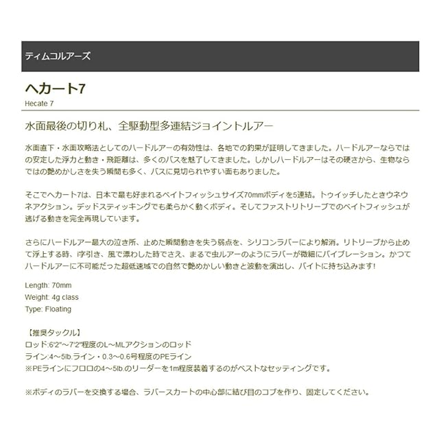 ティムコ(TIEMCO) ヘカート7#423 キララワカサギ 70mm