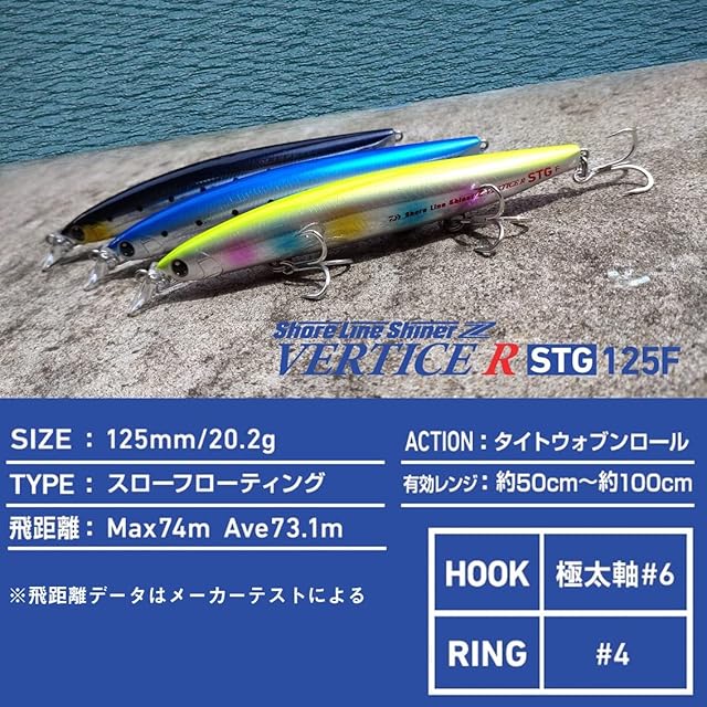 自重(g):20.2 ◆タイプ:スローフローティング ◆アクション:タイトウォブンロール ◆有効レンジ:約50cm~約100cm ◆フック仕様:極太軸#6 ◆リング仕様:#4