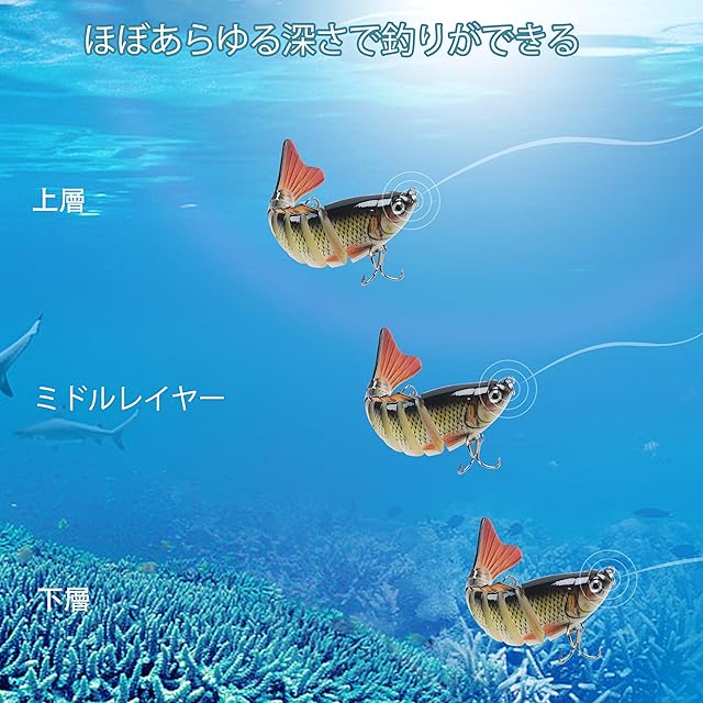 【梱包仕様】:ジョイントルアー 5本(各色1本、トレブルフック付き);専用パッケージ(ブラック) 1個;30日間安心サービス:商品万が一欠点や不良品がありましたら、無料で返品・交換させていただきます。