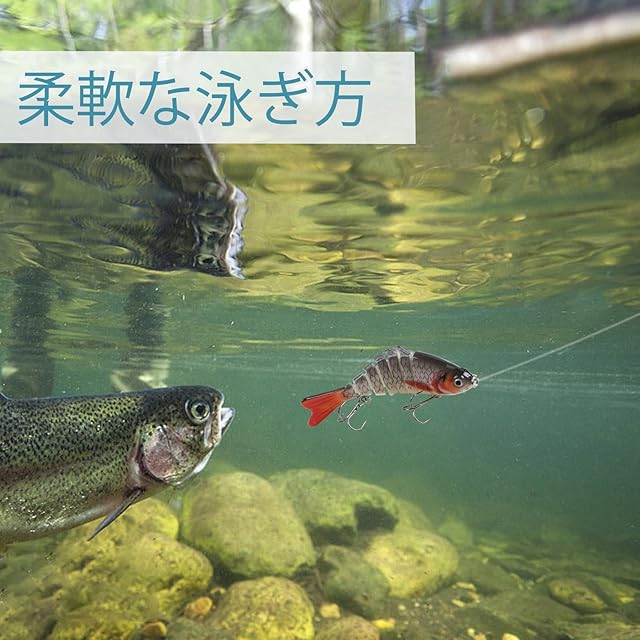 【リアルに動くバスベイト】:7連ジョイントを付いているので、その驚くべき柔らかさは水の中で本物の小魚ように派手なS字の泳ぐ姿を演出!