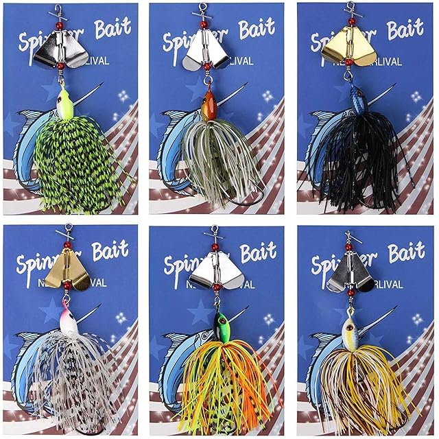 スピナーベイト バスベイト バス釣り バズベイト トップウォーター ルアー ラックバス バス 水面狂騒者 回転と強アピールのプロペラ付き 6色 3/4oz 6本セット