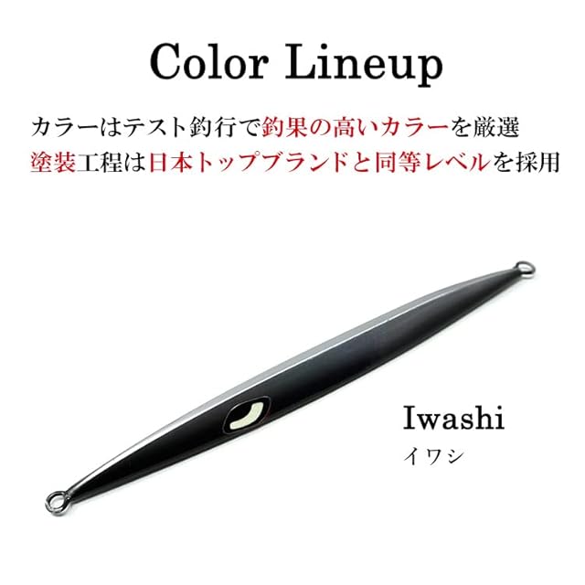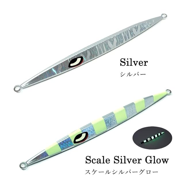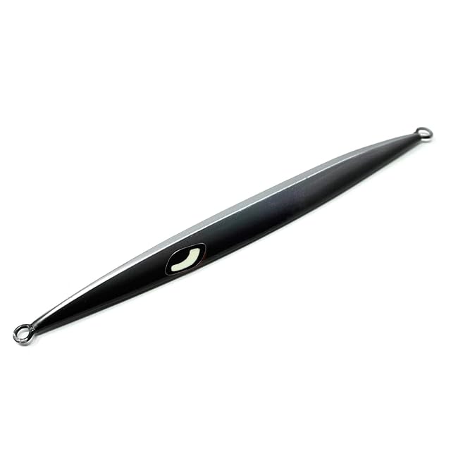 <湾曲した形状>ジグ本体の先から胴にかけて幅広になっていくした形状。ジャーク時の潮切りが良く、トンジギのような永遠とシャクる釣りの切り札に。フォルムが大きい為、魚に視認されやすく、攻撃性の高い青物やマグロ等に特に効果を発揮します。