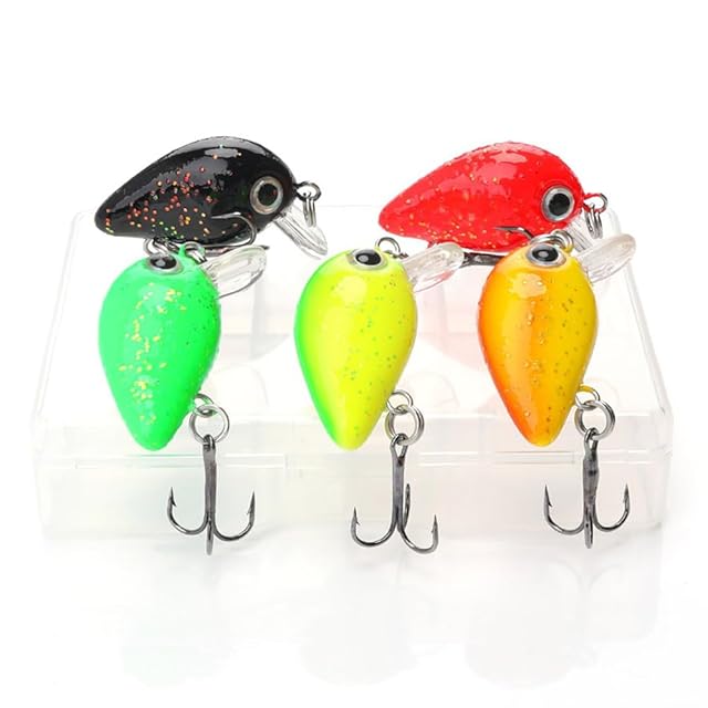 【商品スペック】材質:ABSプラスチック;フック:#12トレブルフック;長さ:2.8cm;重さ:1.5g;セット内容:クランクベイト×5個.