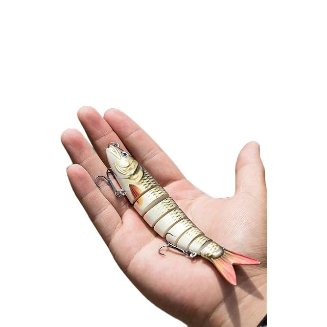 【多関節ゆらゆら泳ぎ】リアルベイトは、8連結ボディーからなる構造により、ルアーの各部は一定程度に左右動けます。ただ巻きでゆらゆらと泳ぎます。その自然な動きで多くの捕食魚を引き付けます。水の流れやリーリング時の水の抵抗を受けて、まるで魚が泳いでいるかの様なリアルな動きを演出。
