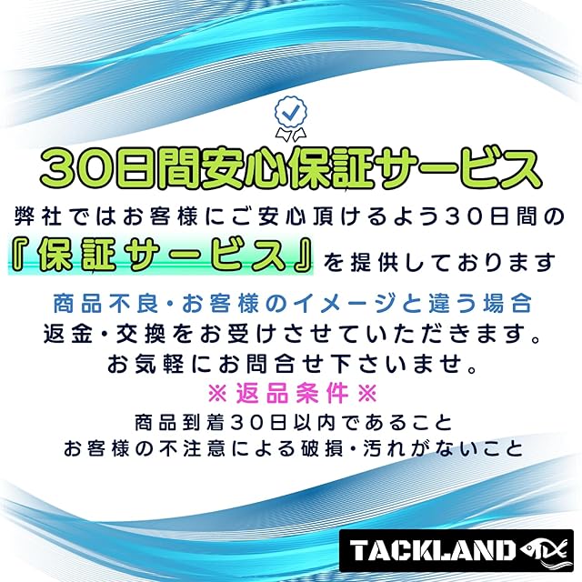 【返金】当店は少しでもリーズナブルにお客様へお届けする為に海外生産しており、検品作業は全て海外にて実施しております。万が一不具合等がございましたらお気軽にご連絡をお待ちしております。実釣に差支えが無いレベルでの塗装ムラやバリ等がある場合がございますのであらかじめご了承ください。お客様のイメージに合わないなどがあった場合にも返品をお受けしてります。