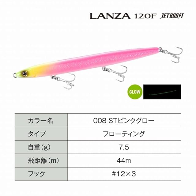 シマノ(SHIMANO) シーバスミノー エクスセンス ランザ 120F ジェットブースト XL-L12X 008 STピンクグロー